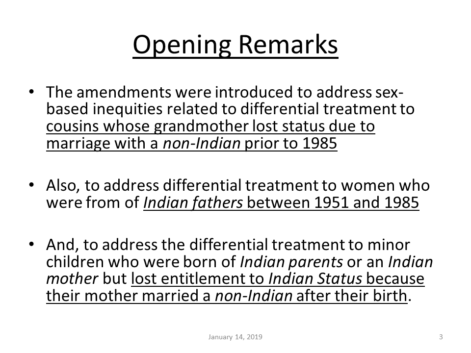 Bill S-3 Collaborative Process on Indian Registration, Band Membership and First Nation Citizenship January 14, 2019 Slide3 ◄ Back Next ► Picture 3 of 26 Bill S-3 Collaborative Process on Indian Registration Revised 01142019Download